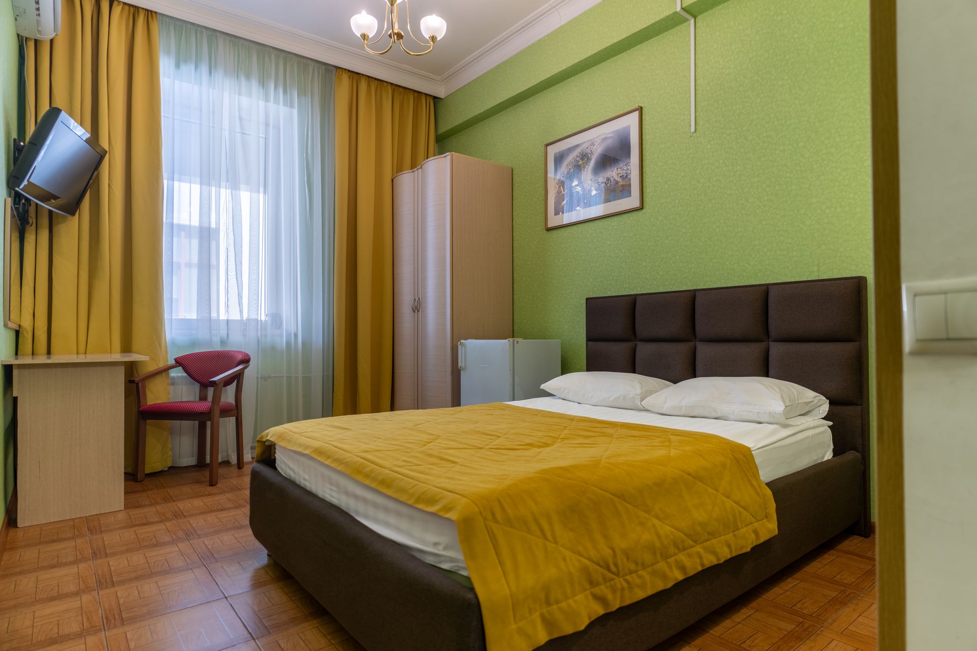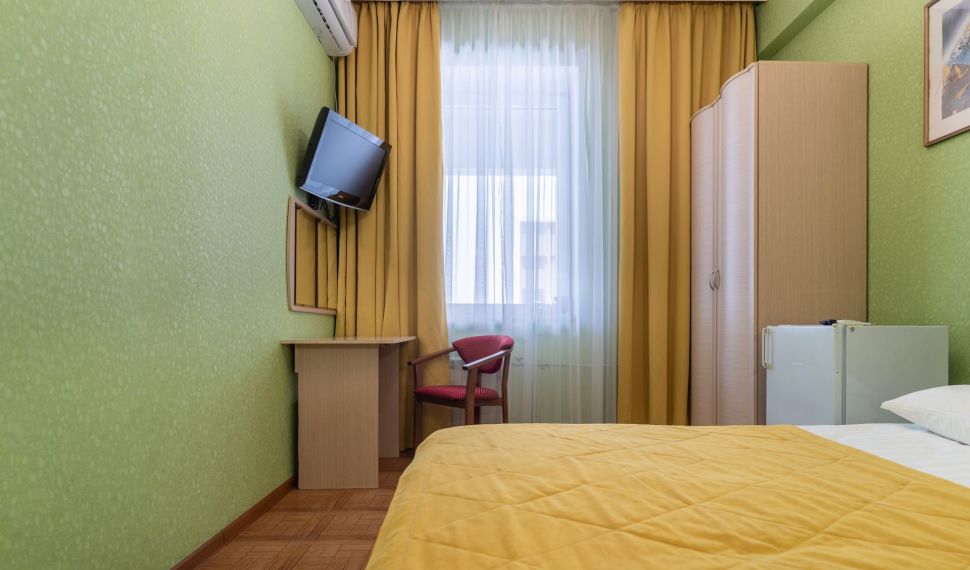 Single room with a window and no balcony. Room area: 17 sq.m. The room features one bed and is equipped with everything needed for a comfortable stay. Non-smoking room with a private bathroom, shower, hairdryer, complimentary toiletries, and free Wi-Fi. All rooms include a TV, air conditioning, mini-fridge, wardrobe, desk, and chair. Accessible for guests with disabilities.